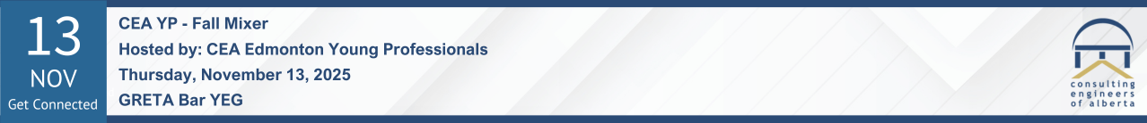 Photographs could be taken at today’s event. By taking part in this event you grant Consulting Engineers of Alberta full rights to use the images resulting from the photography at this event. This might include (but is not limited to), the right to use them in Consulting Engineers of Alberta’s printed and online publicity and social media.